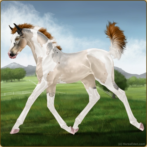 Color: Red Roan Dun Tobiano Sabino
