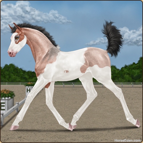 Color: Blood Bay Roan Dun Tobiano Splash White Sabino