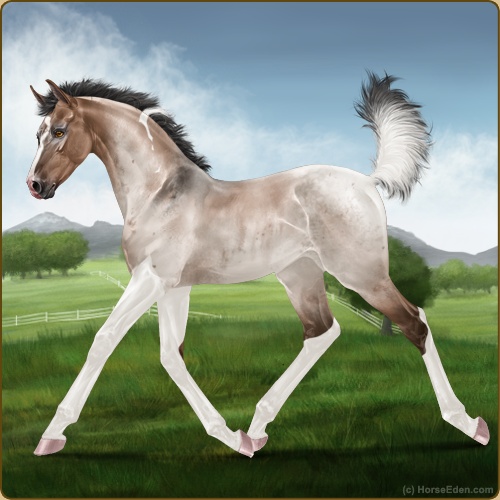 Color: Mahogany Bay Roan Dun Tobiano
