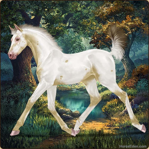 Color: Amber Creme Varnish Fewspot Appaloosa