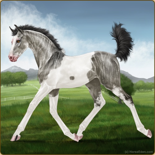 Color: Grullo Tobiano Sabino Brindle