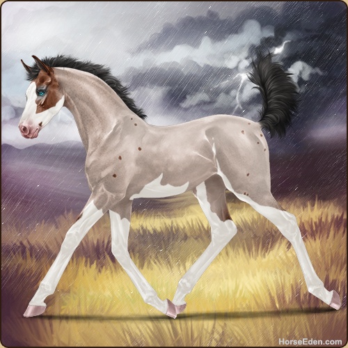 Color: Mahogany Bay Roan Splash White Sabino
