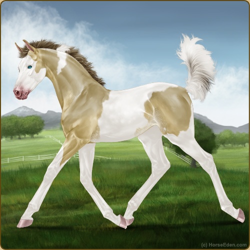 Color: Amber Champagne Tobiano Splash White Rabicano