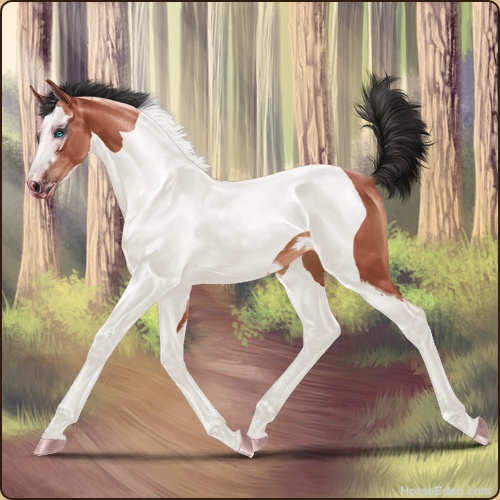 Color: Blood Bay Dun Tobiano Splash White Sabino