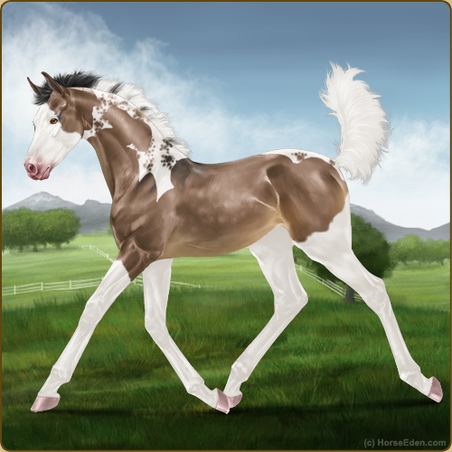 Color: Brown Dun Tobiano Splash White