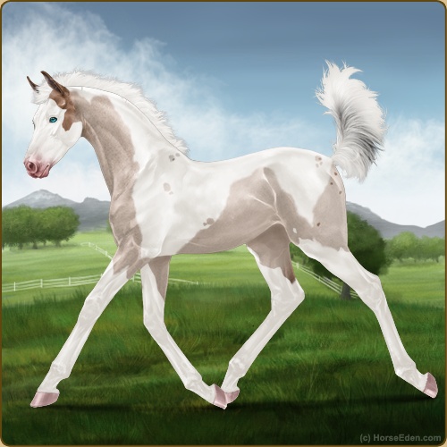 Color: Mahogany Bay Roan Dun Tobiano Splash White