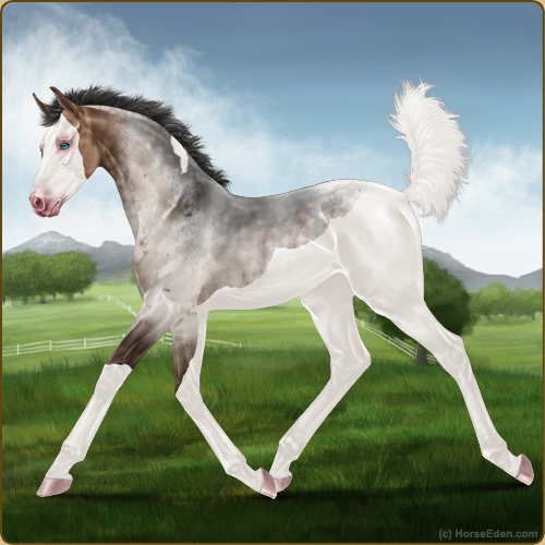 Color: Mahogany Bay Roan Dun Tobiano Splash White Sabino Appaloosa