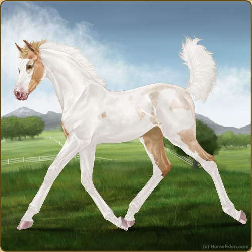 Color: Flaxen Red Roan Dun Tobiano Frame