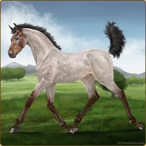 Color: Brown Roan Varnish Snowflake Appaloosa
