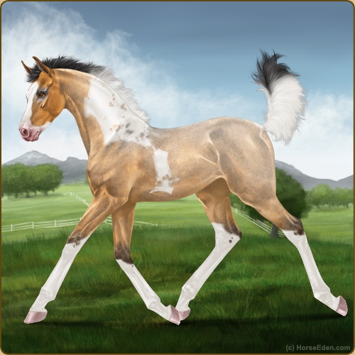 Color: Golden Bay Roan Dun Tobiano Sabino