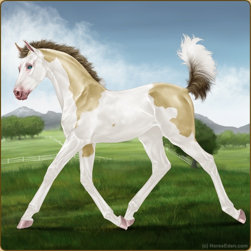 Color: Amber Champagne Tobiano Splash White Sabino