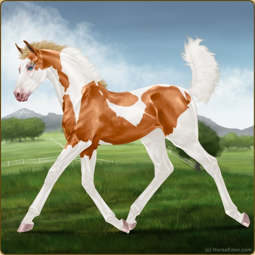 Color: Flaxen Chestnut Tobiano Splash White Sabino