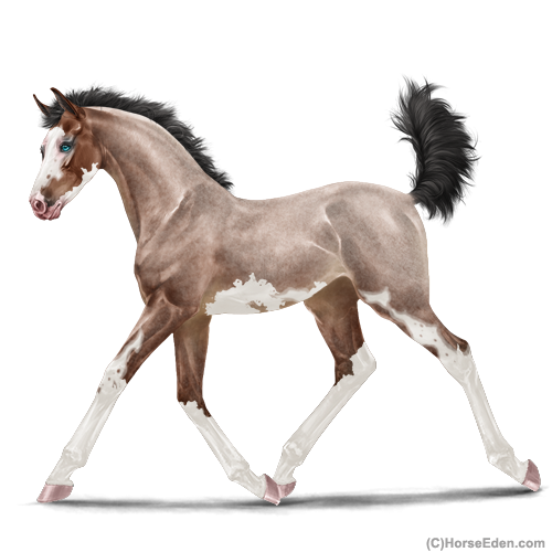 Color: Mahogany Bay Roan Splash White Sabino