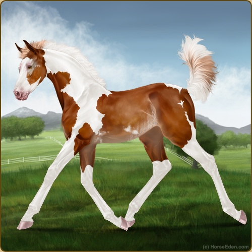 Color: Flaxen Chestnut Tobiano Splash White Sabino Rabicano