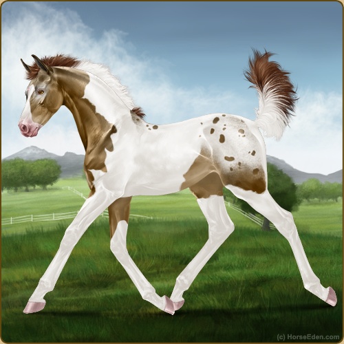 Color: Liver Chestnut Tobiano Splash White Blanket Appaloosa