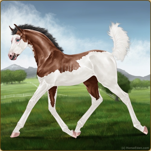 Color: Mahogany Bay Splash White Rabicano