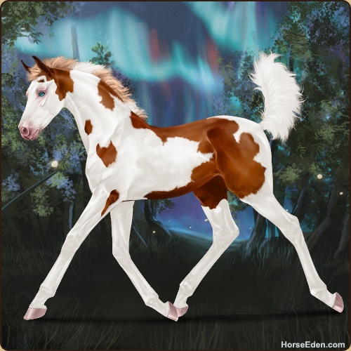 Color: Flaxen Chestnut Tobiano Splash White Sabino