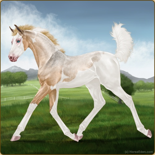 Color: Flaxen Red Roan Dun Tobiano Splash White