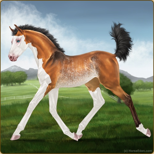 Color: Copper Bay Dun Splash White Rabicano