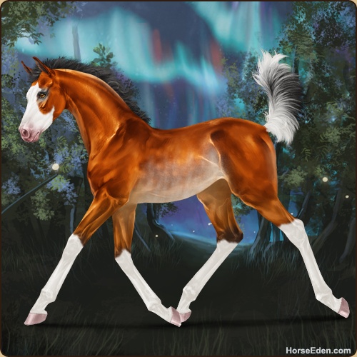Color: Copper Bay Splash White Rabicano