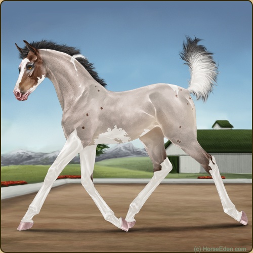 Color: Brown Roan Tobiano Sabino