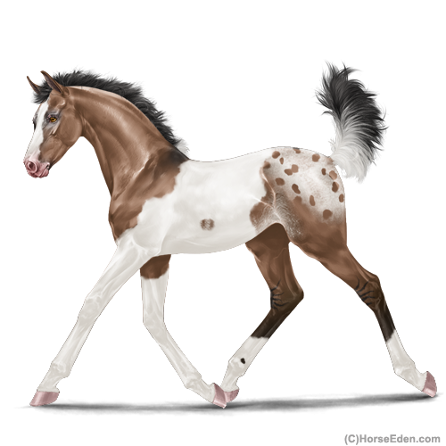 Color: Mahogany Bay Dun Tobiano Rabicano Blanket Appaloosa