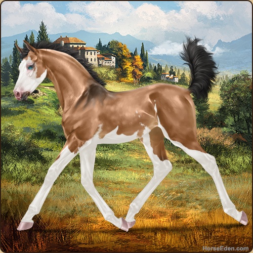 Color: Light Bay Dun Splash White Sabino