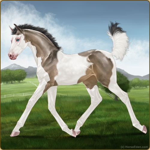 Color: Brown Dunskin Tobiano Splash White