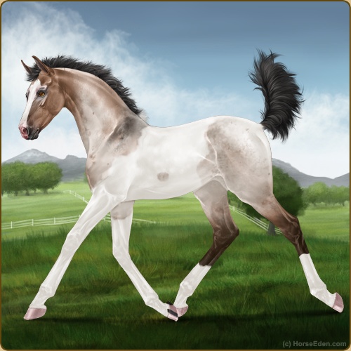 Color: Mahogany Bay Roan Dun Tobiano