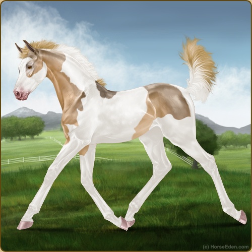 Color: Flaxen Red Dun Tobiano Splash White