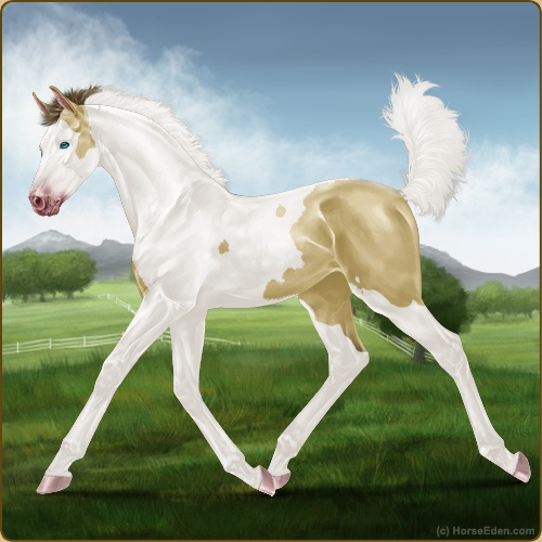 Color: Amber Dun Tobiano Splash White