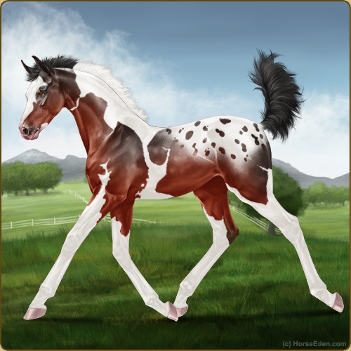 Color: Blood Bay Tobiano Sabino Blanket Appaloosa