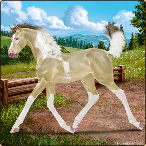Color: Amber Champagne Tobiano Splash White