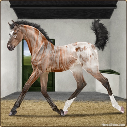 Color: Mahogany Bay Roan Dun Blanket Appaloosa Brindle
