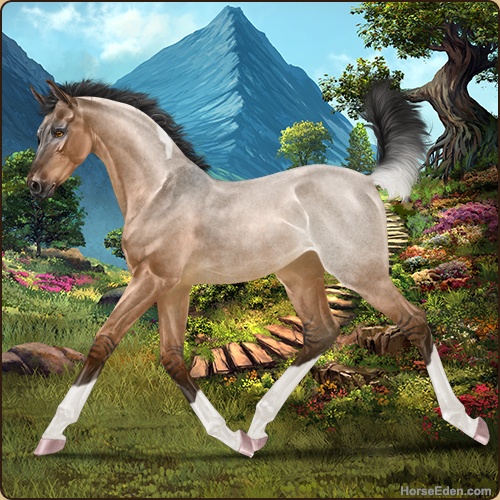 Color: Light Bay Roan Dun Tobiano Rabicano