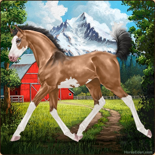 Color: Light Bay Dun Splash White Sabino