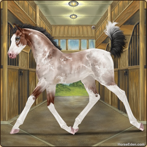 Color: Mahogany Bay Roan Splash White Sabino