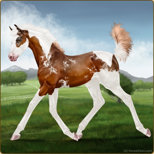 Color: Flaxen Chestnut Tobiano Splash White Sabino