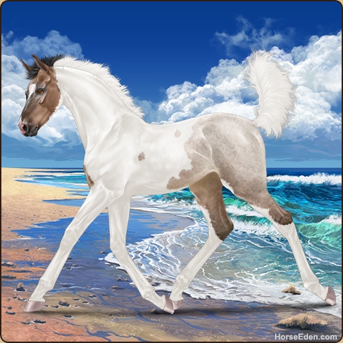 Color: Mahogany Bay Roan Dun Tobiano Rabicano