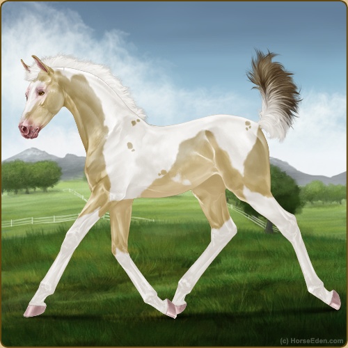 Color: Amber Champagne Tobiano Sabino