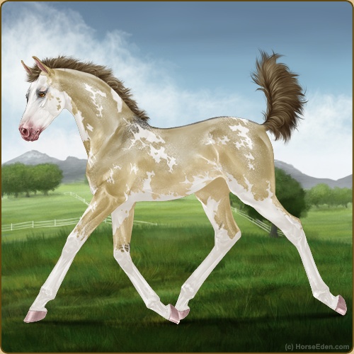 Color: Amber Dun Tobiano Splash White Sabino