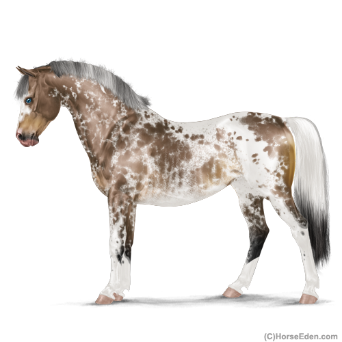 Color: Brown Buckskin Tobiano Splash White Rabicano