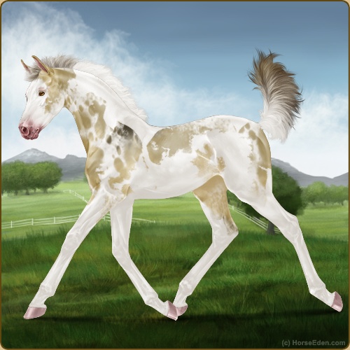 Color: Amber Dun Tobiano Sabino Rabicano Frame