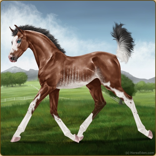 Color: Mahogany Bay Splash White Rabicano