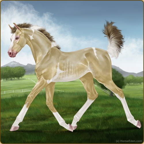 Color: Amber Champagne Tobiano Rabicano