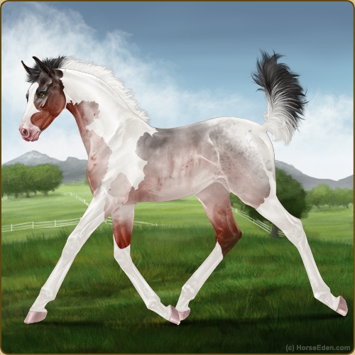 Color: Blood Bay Roan Tobiano Sabino
