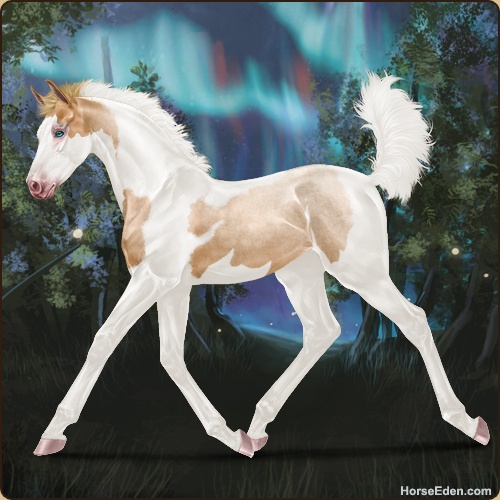 Color: Flaxen Red Roan Dun Tobiano Splash White Sabino