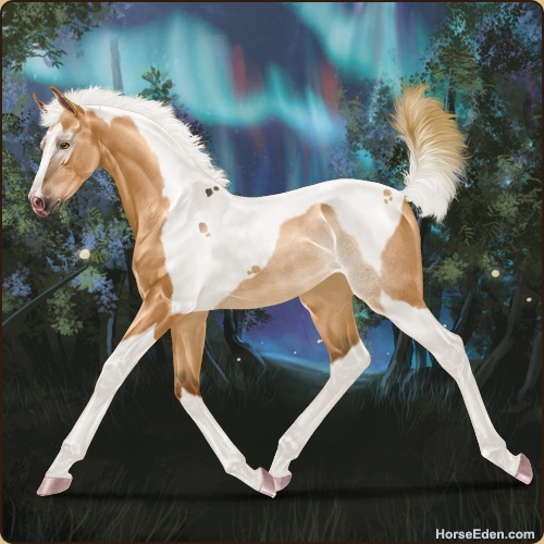 Color: Flaxen Red Dun Tobiano Rabicano