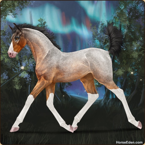Color: Copper Bay Roan Splash White