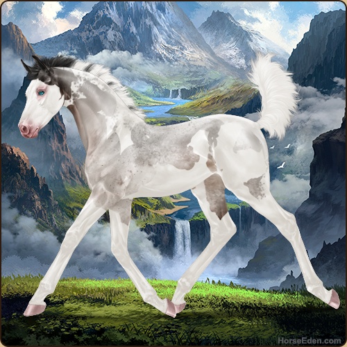 Color: Brown Roan Tobiano Splash White Sabino Frame